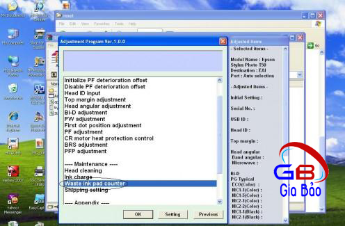 Hướng dẫn reset tràn bộ nhớ máy in epson T50, T60