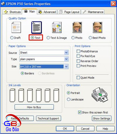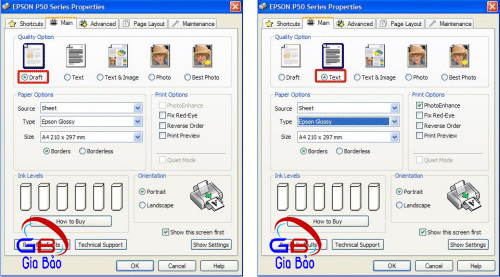 - Chọn chế độ in Draft hoặc Text (hình 3 & 4)